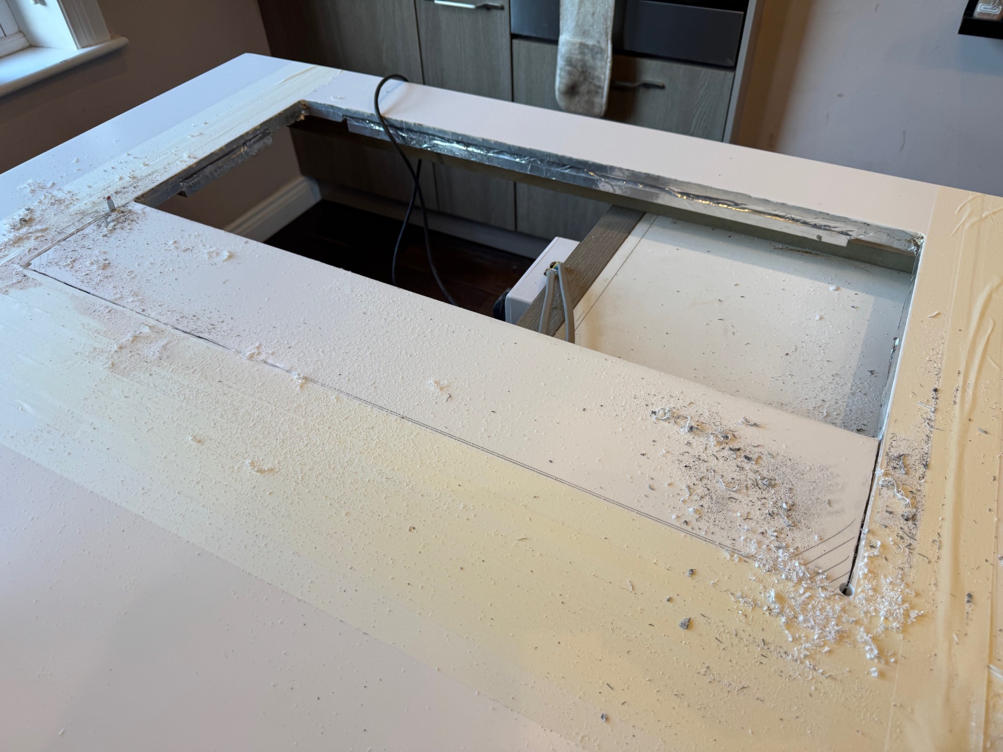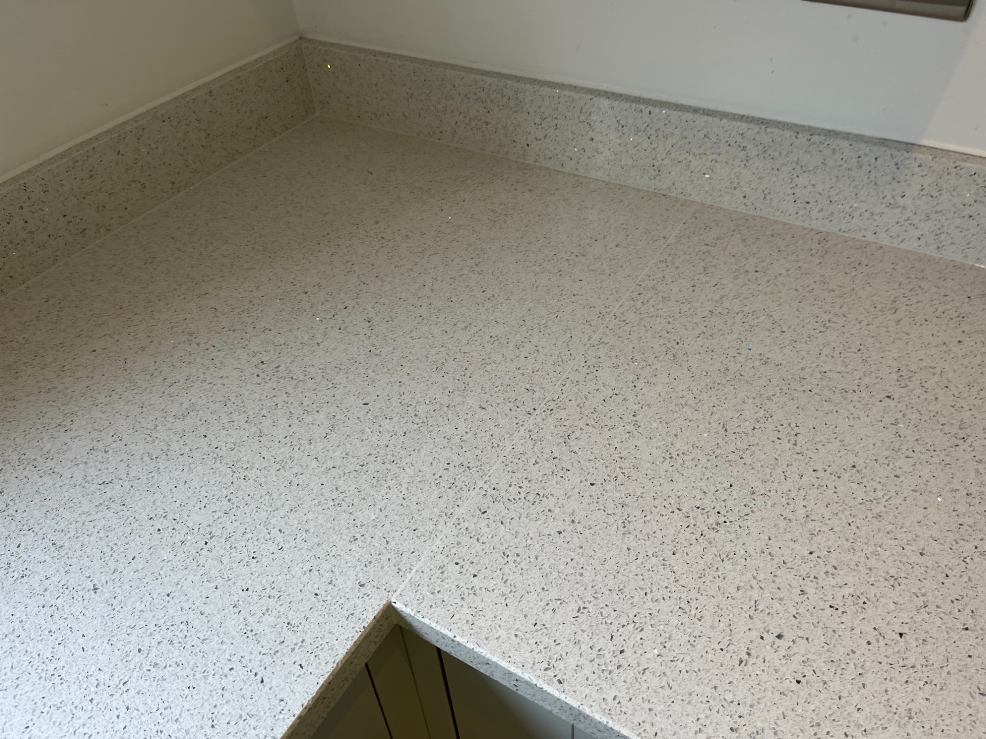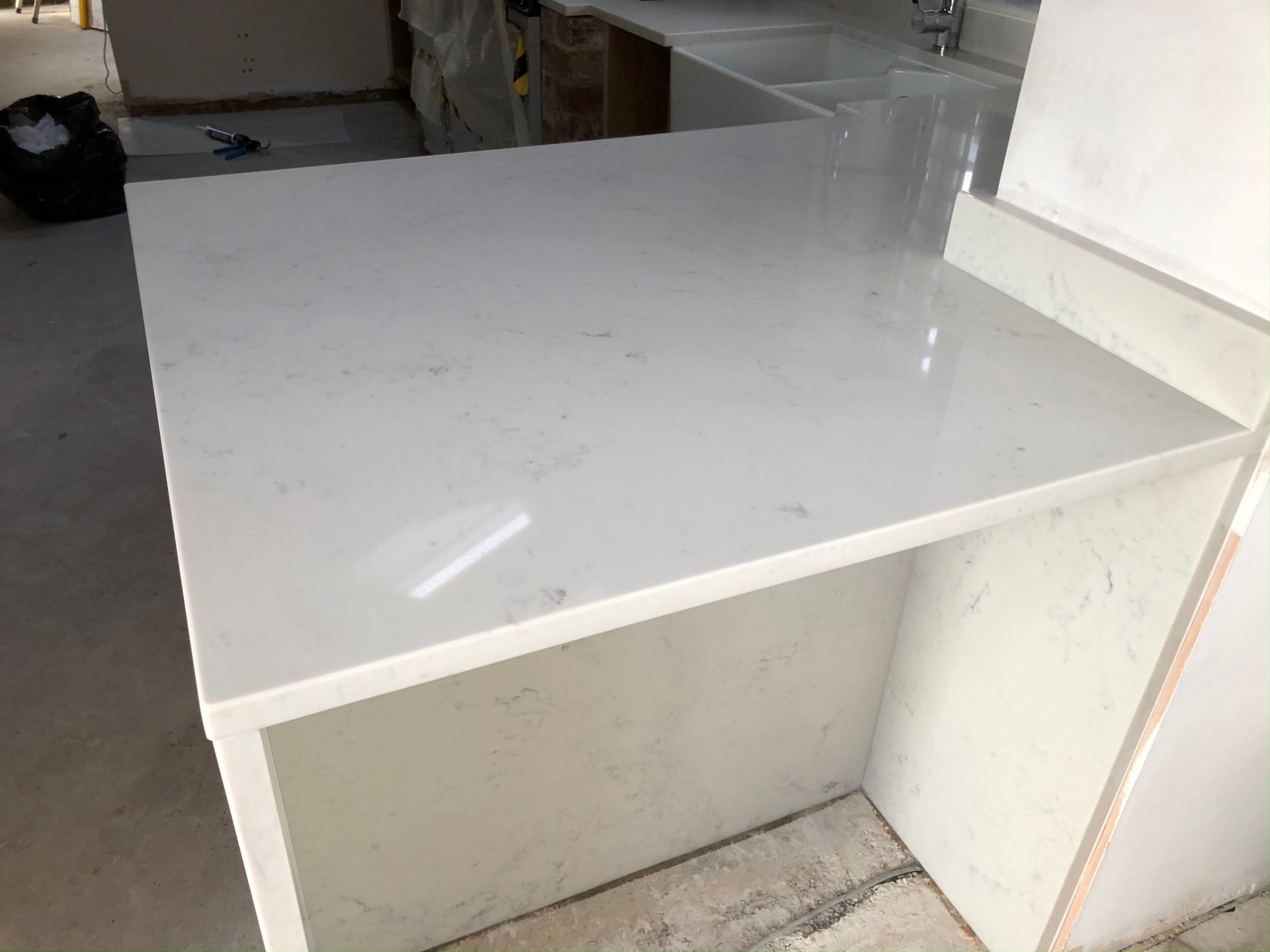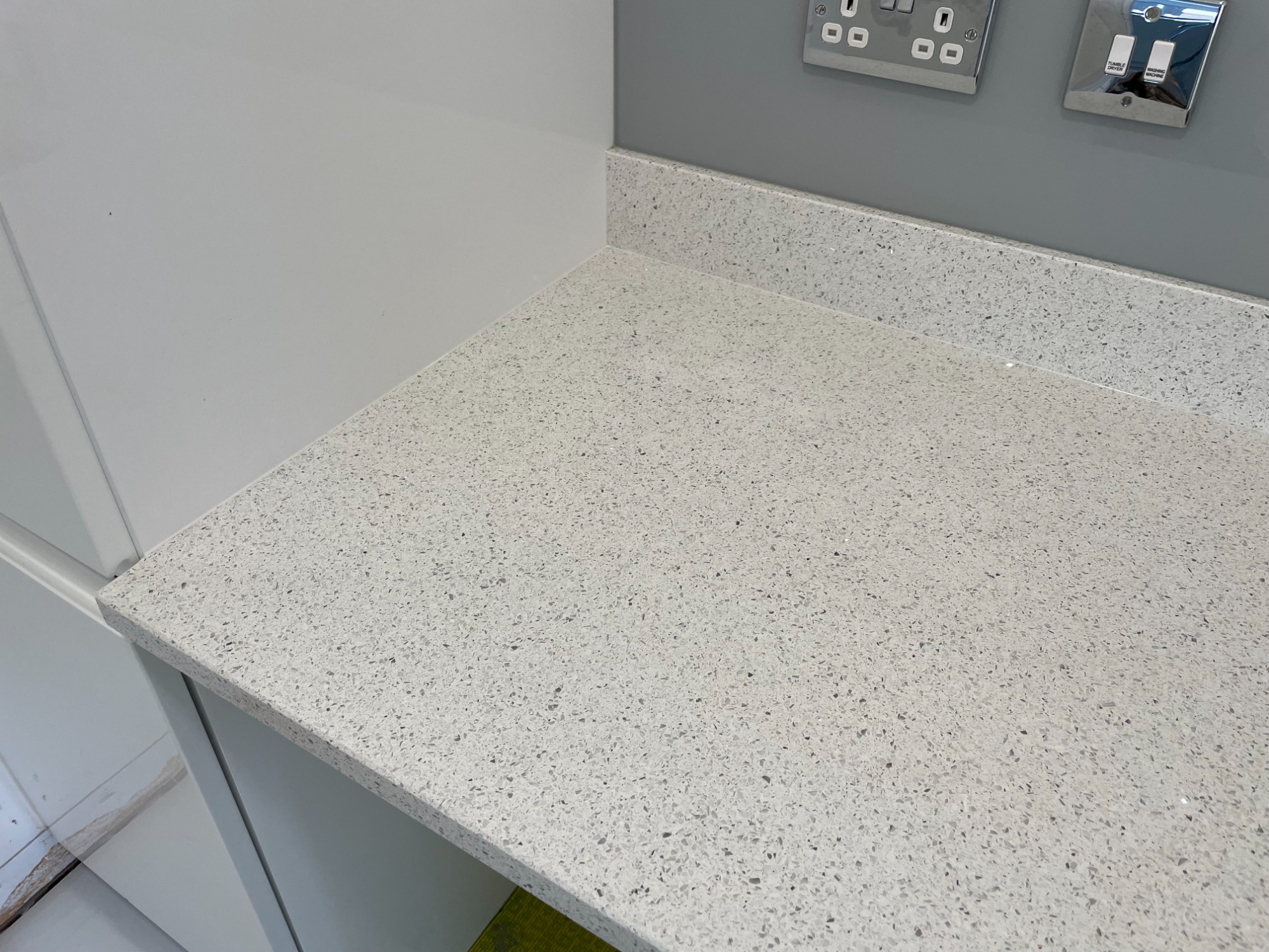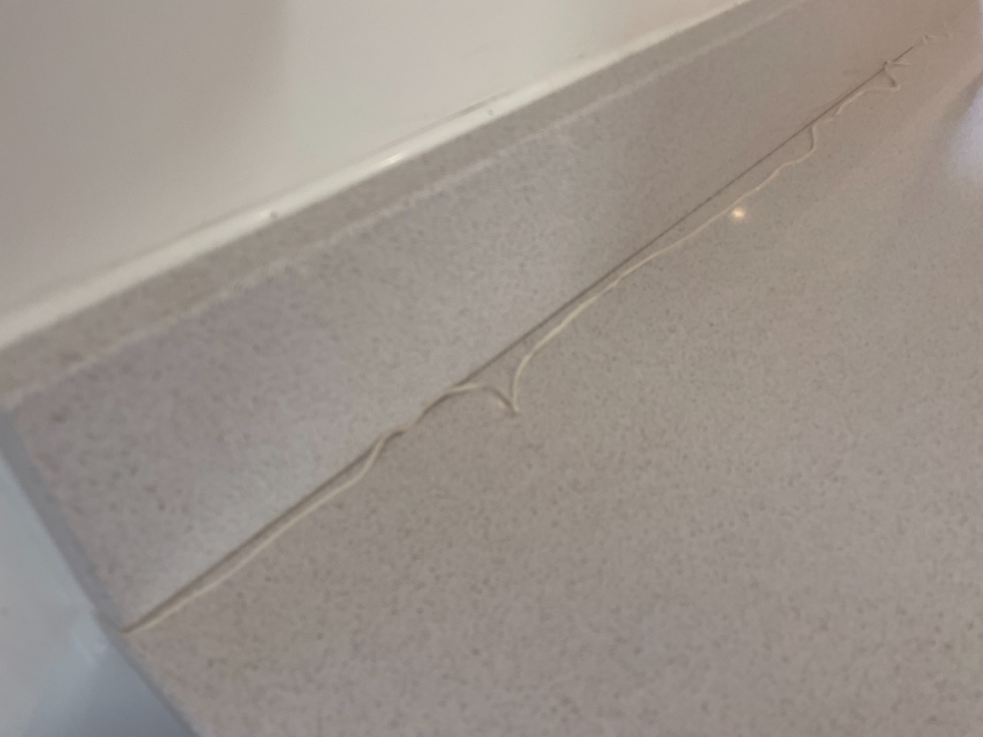 grey quartz worktop with silicone coming out