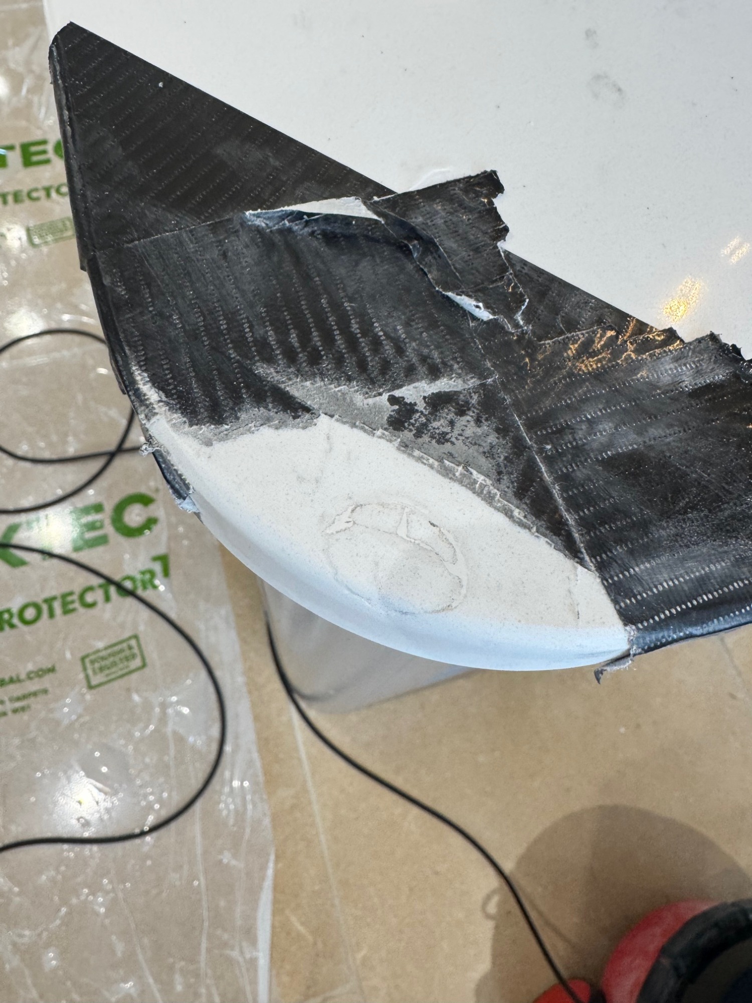 A finished repair on a marble table.
