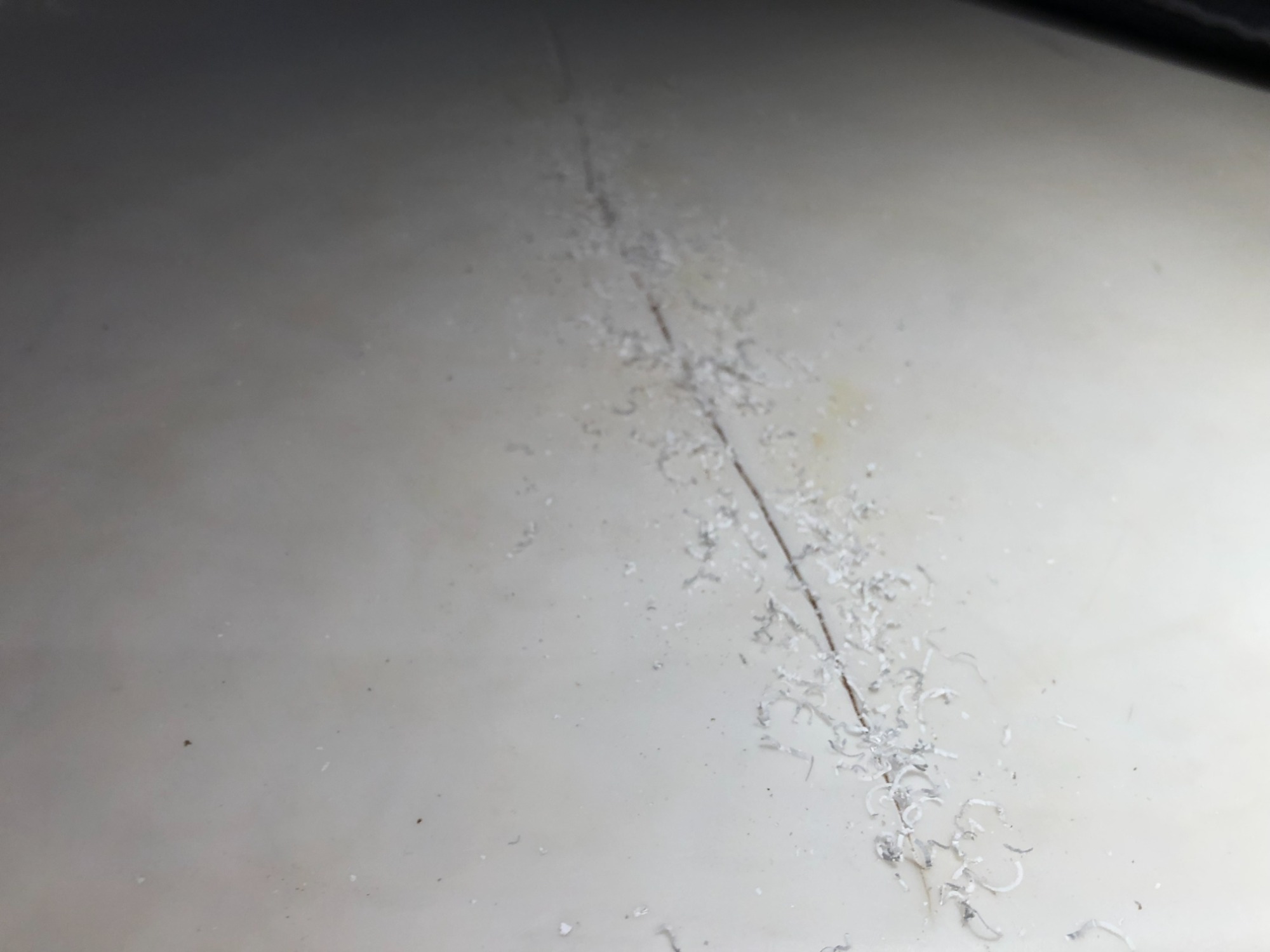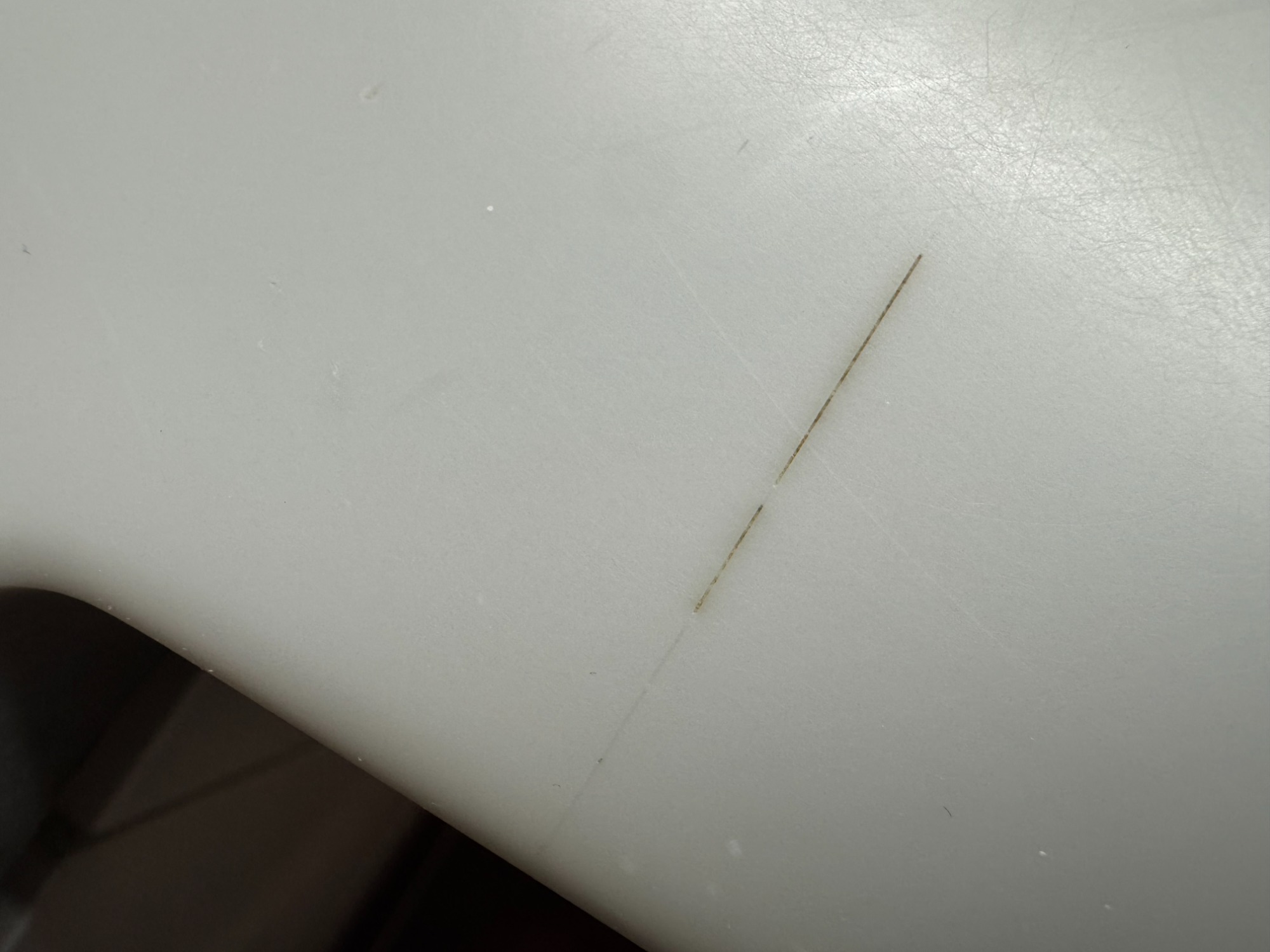 White corian surface cracked.