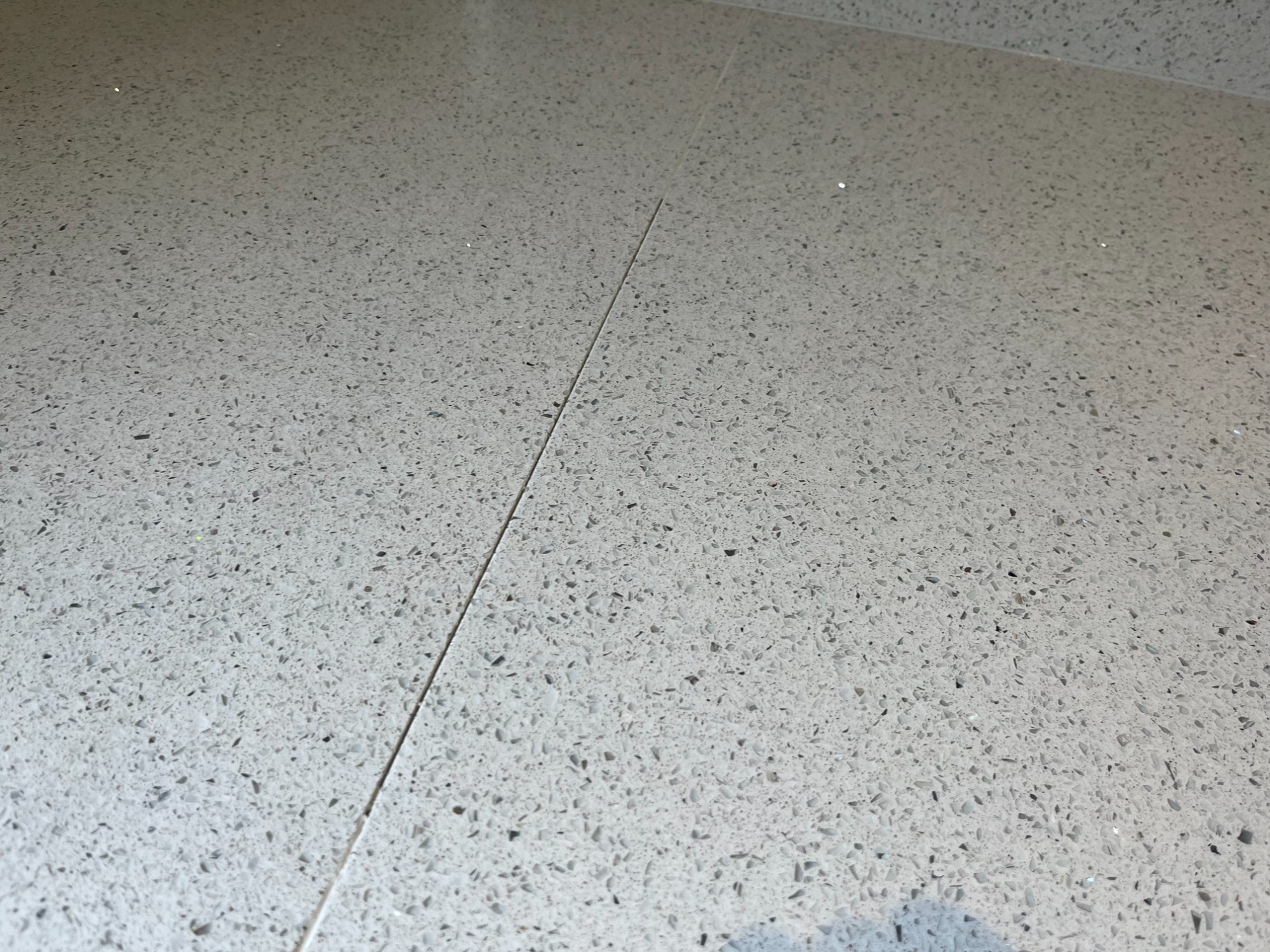 Sparkley white quartz showing finished repair to the surface.