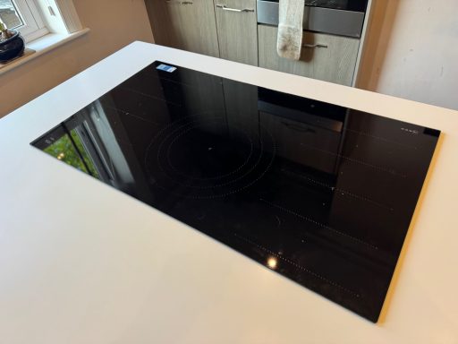 Quartz counter top with hob cut out showing led strip just underneath worktop.All top re polished to a high gloss sheen.