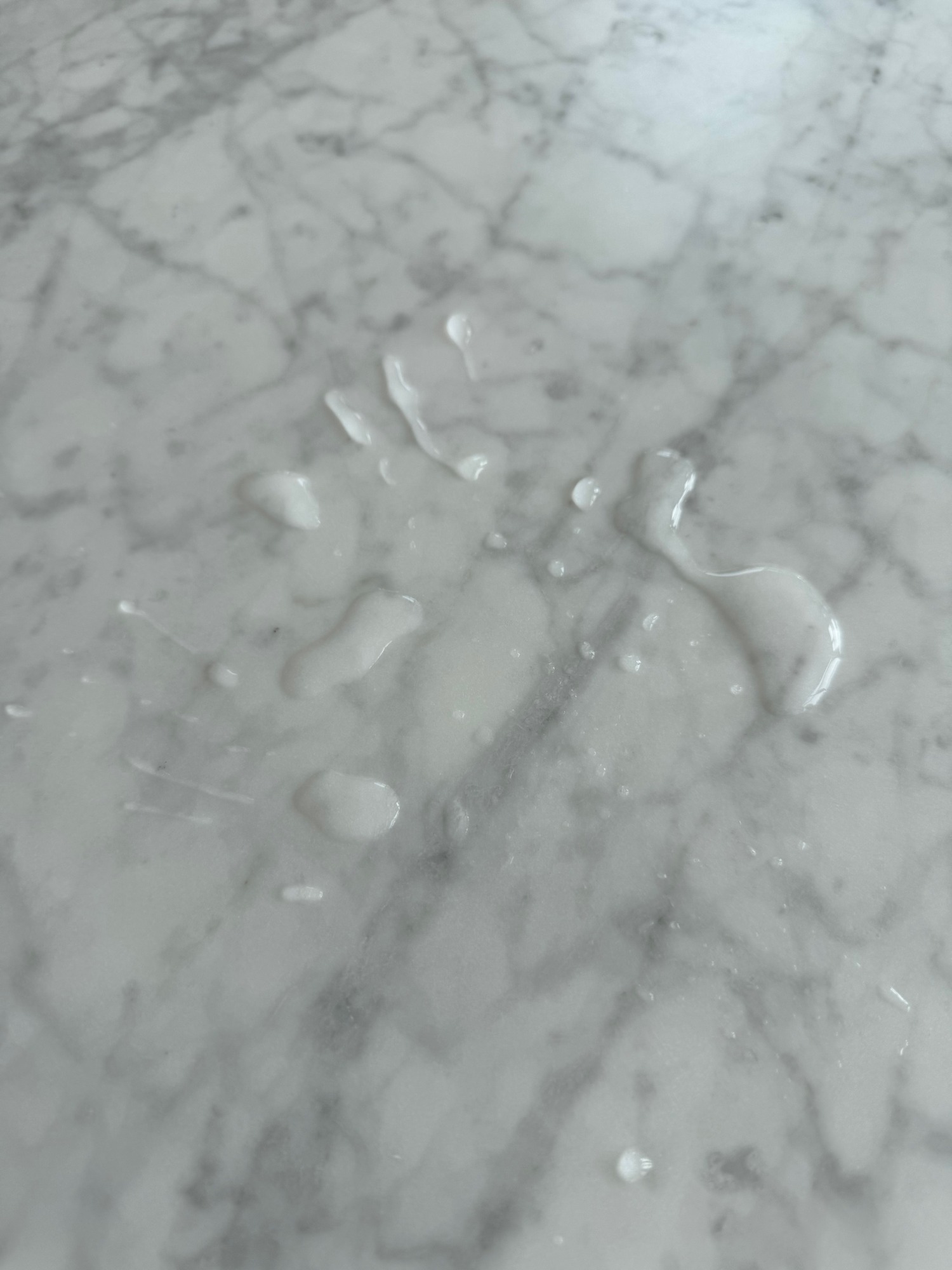 White marble table top does not now stain. Picture showing water laying on the surface. The repelant working.