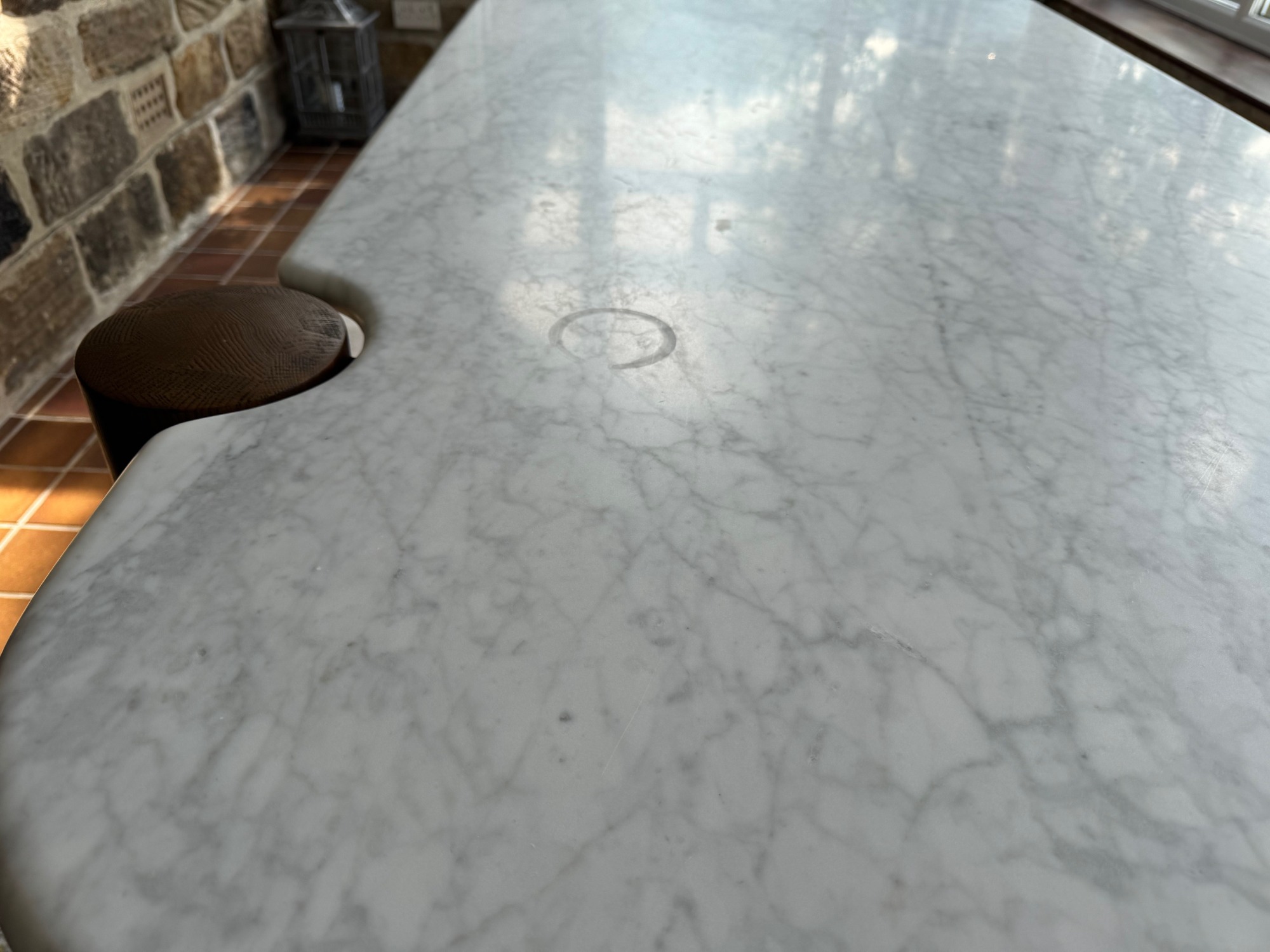 Round stain in marble top from a cup.