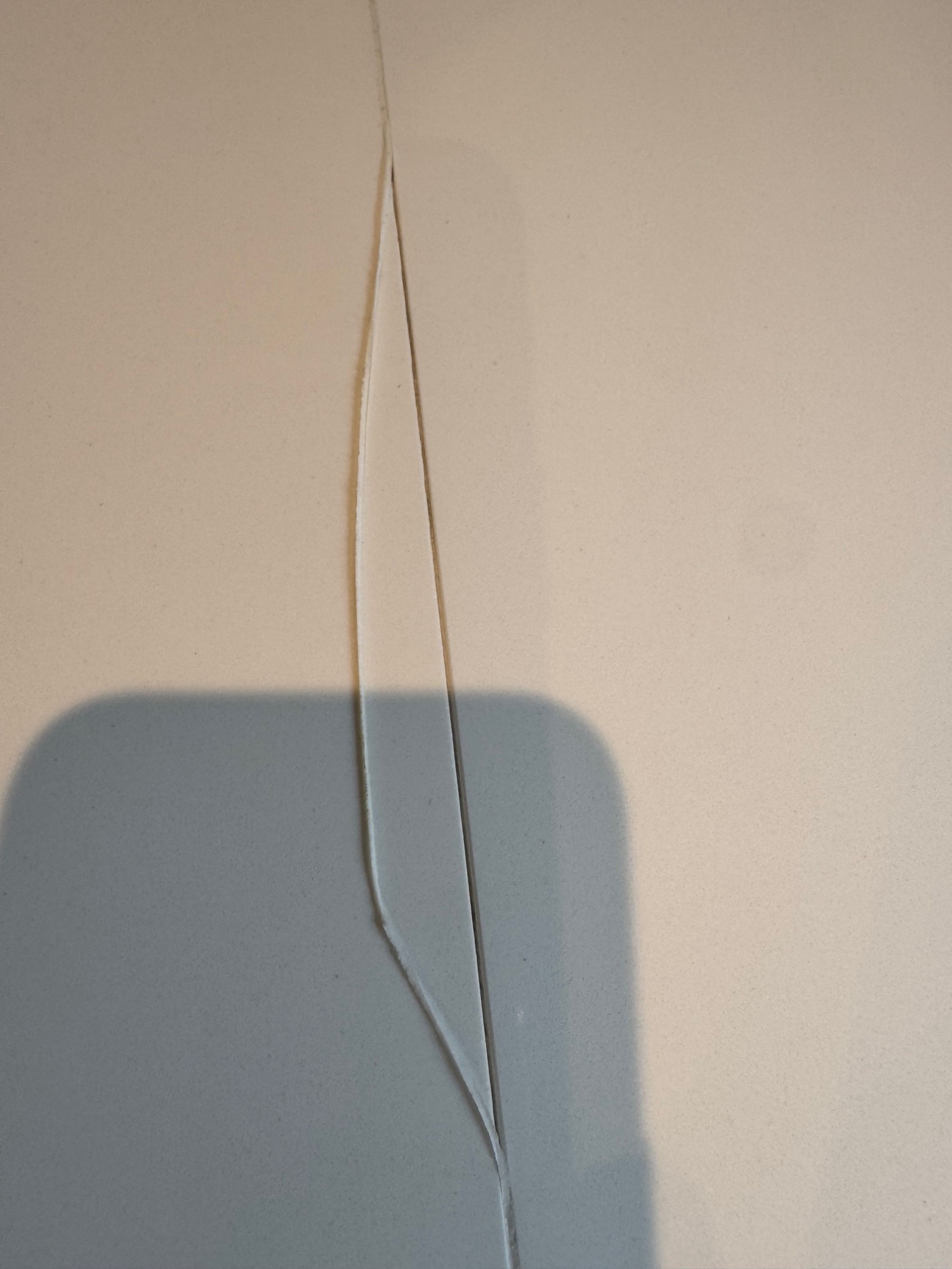 White quartz worktop showing gap at the back because of movement underneath.Not supported very well.