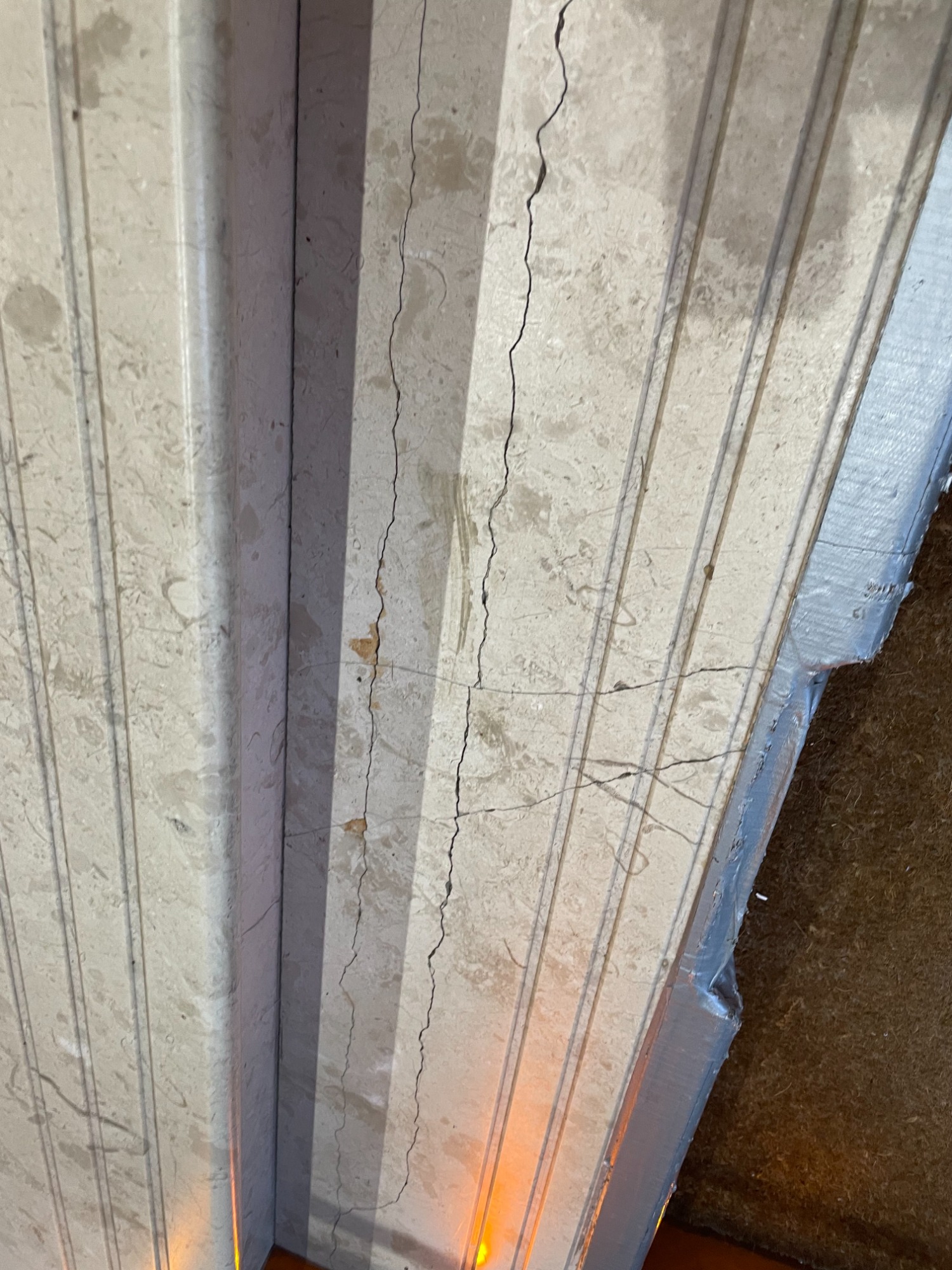 damaged edge on a fire place hearth